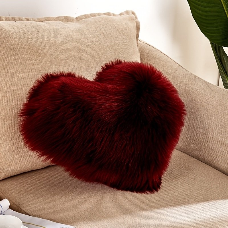 1pc Boho Love Heart Plush Throw Pillow - Fluffy Luxury Cushion for Couch, Sofa, Bed - Detachable and Machine Washable Home Decor