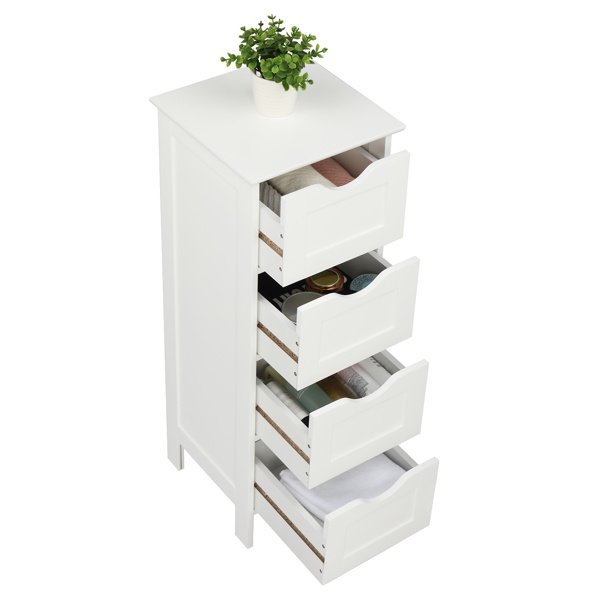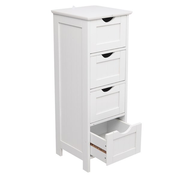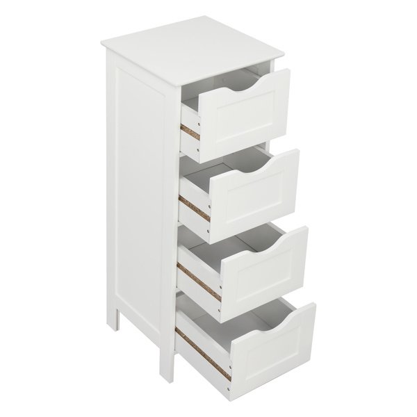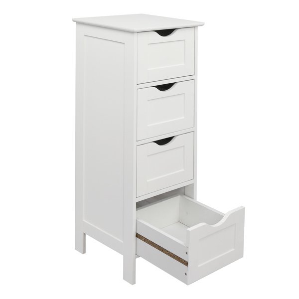 This 4 Drawers Storage Cabinet is highly recommended to you. It's fantastic for the bathroom or in any other room where you require some additional storage. Adopting high quality P2 MDF material, it features smooth, stable and sturdy. It has 4 drawers, so that you can store a lot of items in it. Moreover, with elegant appearance and concise design, it can coordinate with any style decoration. So what are you waiting for? Trust us, it's worth buying!