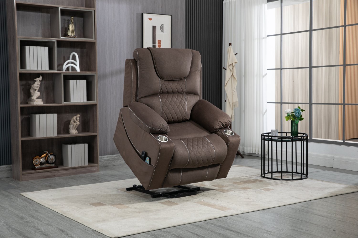 Description2 remote controllers, respectively controlling massage heating and lifting auxiliary functions *Lie flat for 180 degrees, oversize, fit for American customers. *Bearing weight: 400 pounds. *The backrest and foot plate can be opened separately, controlled by the same remote control, with a unique design. *Rhombic grid fashion design, super high face value *Hardwood and plywood frame: combination of wood+iron frame 100% super soft and durable polyester microfiber pouch: comfortable to sit in and stain resistant. *Remote control for lifting, three position lifting, sitting and lying *Flexible positioning: the remote control can be stopped at any time. Lay 180 degrees flat. *Wired remote control: quality assurance.*Storage side pockets with storage pockets on both sides.Package SizePackage1: 30.5 * 31.5 * 9.5 in. 24 lbsPackage2: 32.7 * 24.9 * 14.2 in. 36 lbs.Package3:32.7 * 25.6 * 19.3 in. 79.2 lbs.